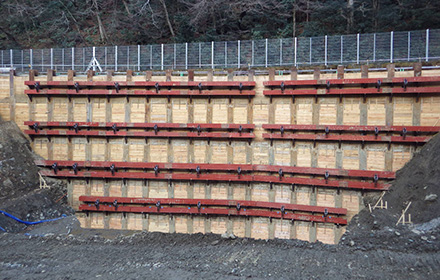 1号橋 A1橋台 アンカー式山留設置完了。