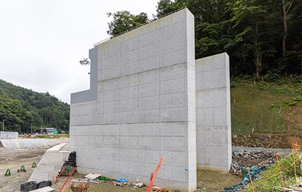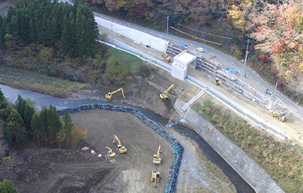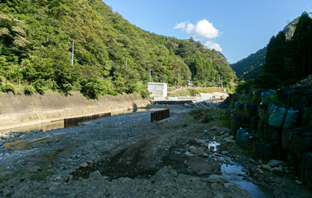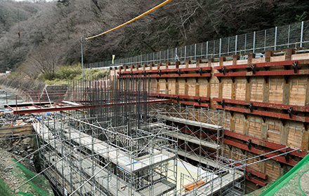 2019年3月時点で施工中だった2号橋のP1橋脚が6月に予定通り完成し、現在はA1橋台の躯体工事を行っています。今後の予定としては、2号橋P1橋脚施工時に仮締切工に使用した大型土のうを撤去し、出水期における河川断面を確保します。又、10月末までにはこの2号橋下部工を上部工業者に引き渡す予定です。これから台風シーズンとなるので、河川増水による災害等に注意し施工していかなければなりません。