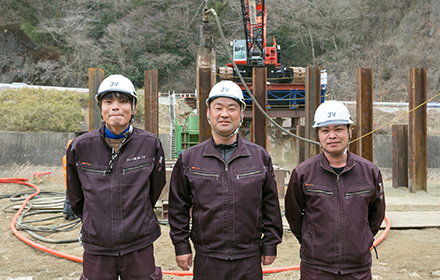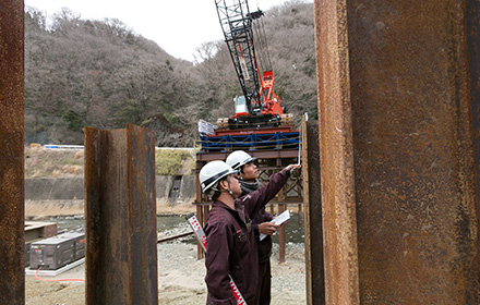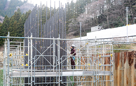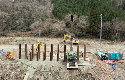 杭設置後の目視による施工管理。