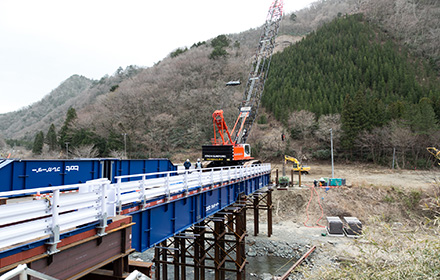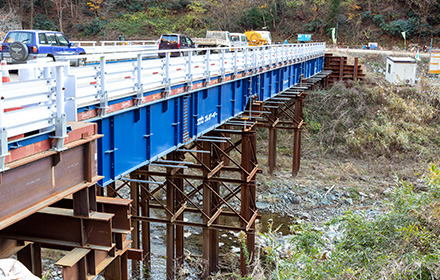 対岸施工の為の仮桟橋。 -