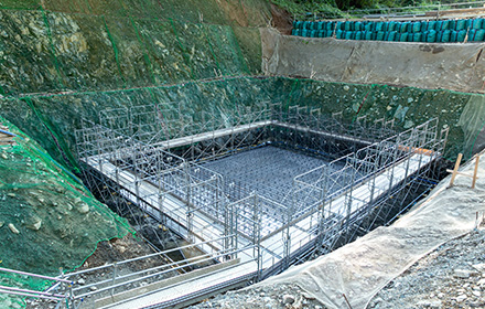 P1橋脚工。2020年3月6日、岩盤掘削完了。 -