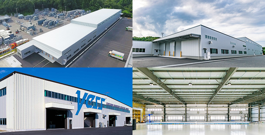 工場、倉庫、スポーツ施設、レジャー施設、店舗等の大スパン低層建築を、ご要望に応じCADでドローイング、CAMを介し生産ラインに指示する為、フレキシブルなオーダーメイド感覚のシステム建築となっています。