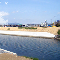 河川・護岸![]() 河岸などで水流や波浪の浸食破壊を防ぐために、地盤の表面や堤防の法面(のりめん)を覆って保護します。 |